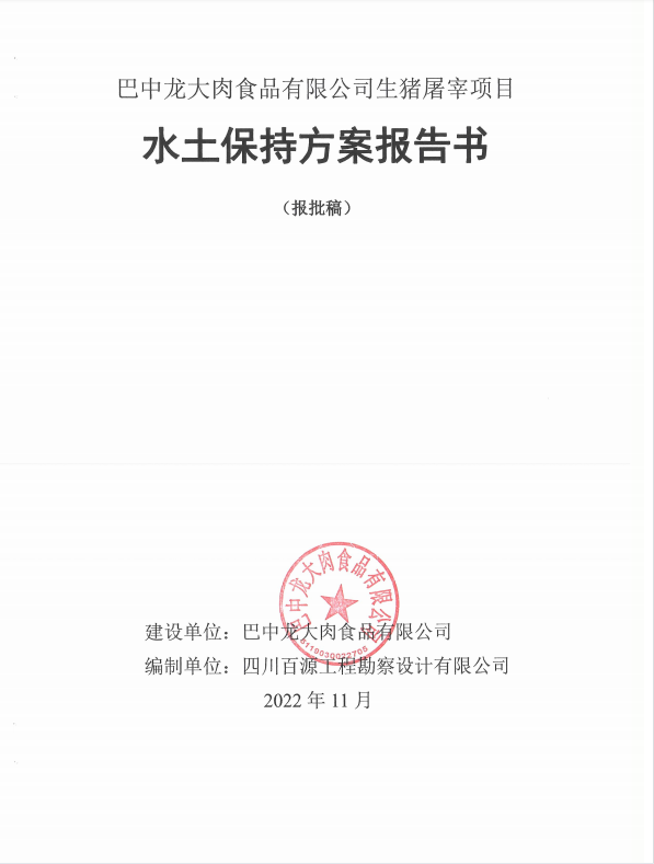 巴中WilliamHill官方网站肉食物有限公司生猪屠宰项目水土坚持计划报告书.pdf